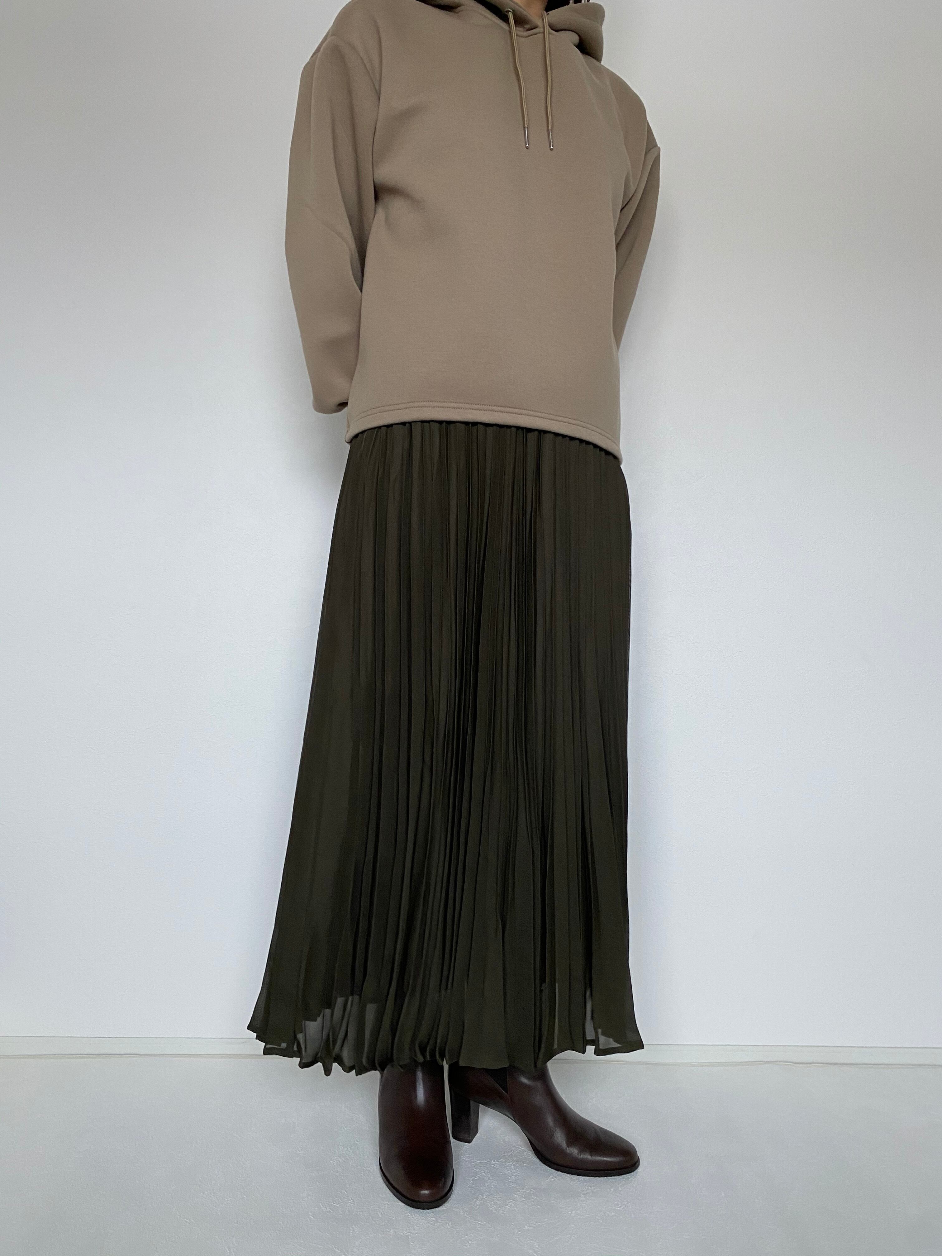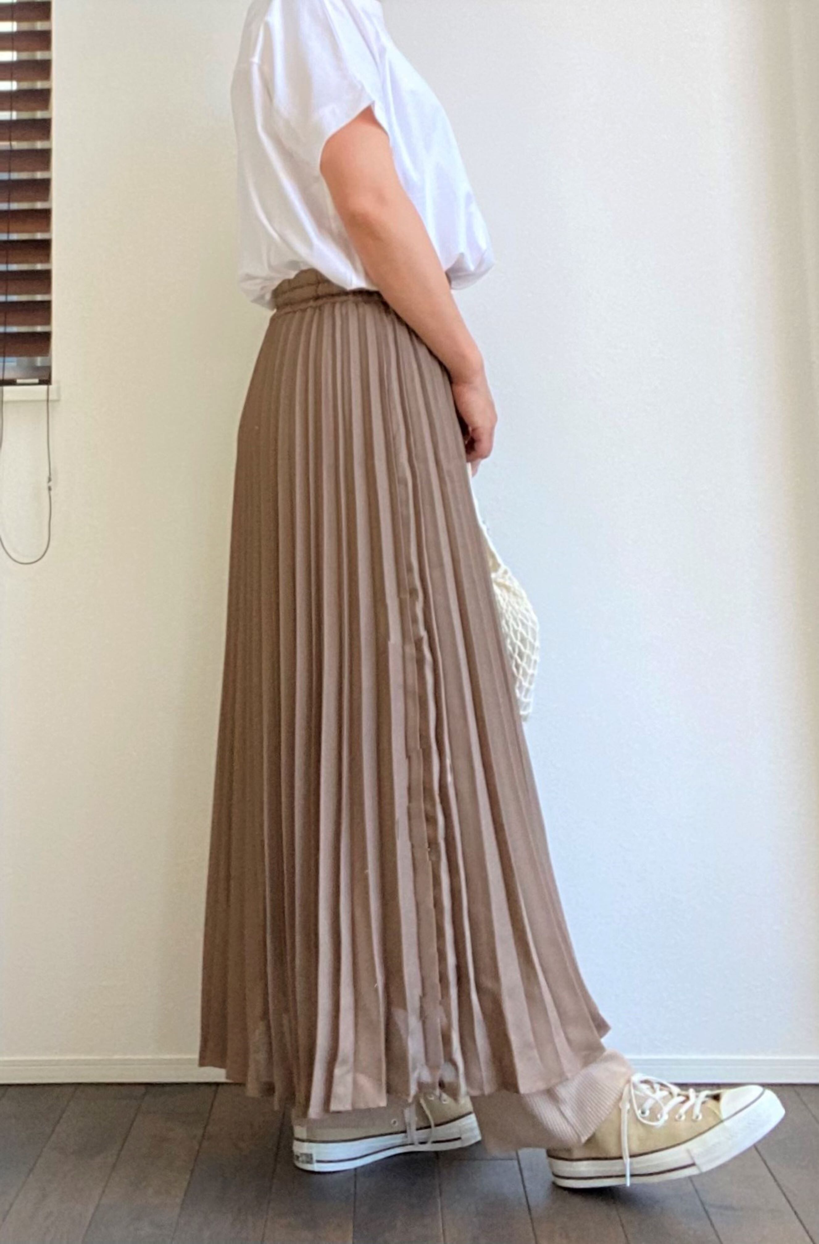 動きのあるプリーツがトレンドコーデには欠かせないアイテムです。