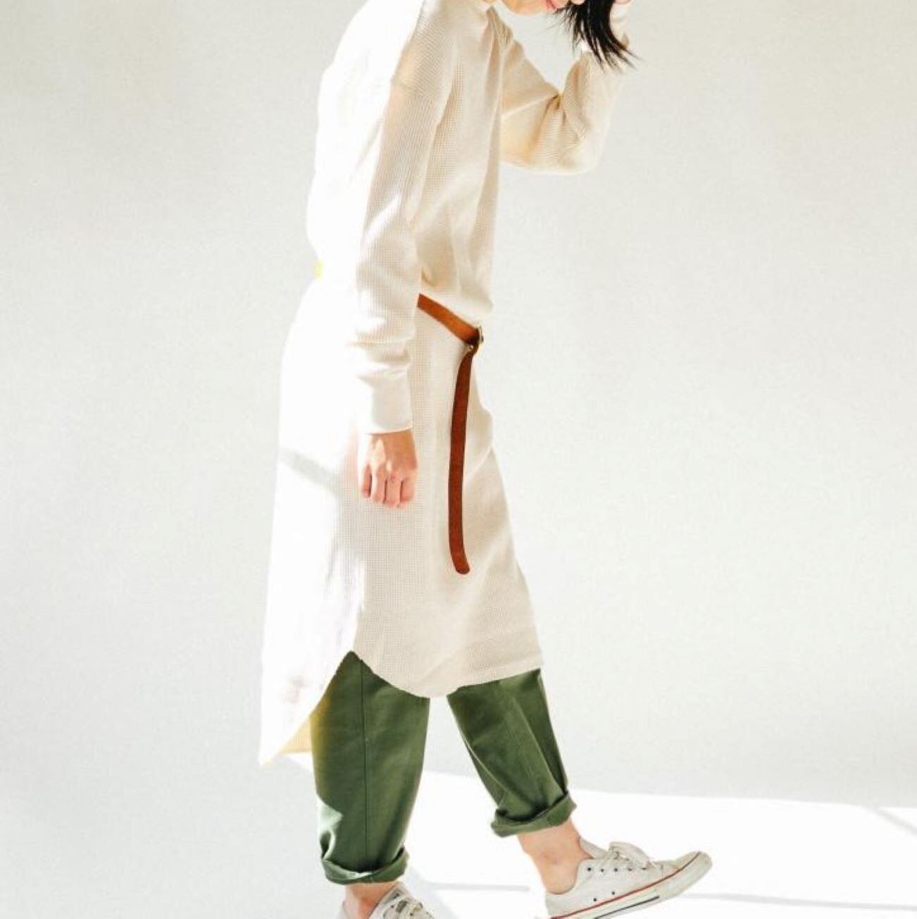 ベルトでウエストマークしてもそのまま着てもダボつかずすっきり見えます。