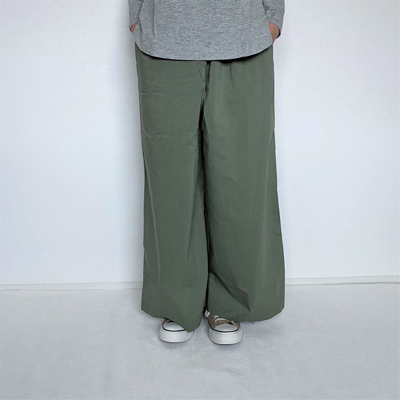 ハリ感があり肌触りの良いタイプライター生地を使用したワイドパンツです。