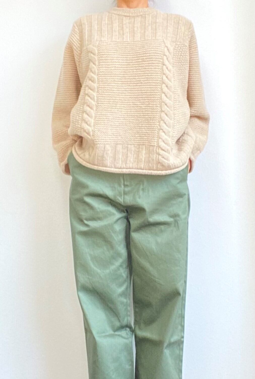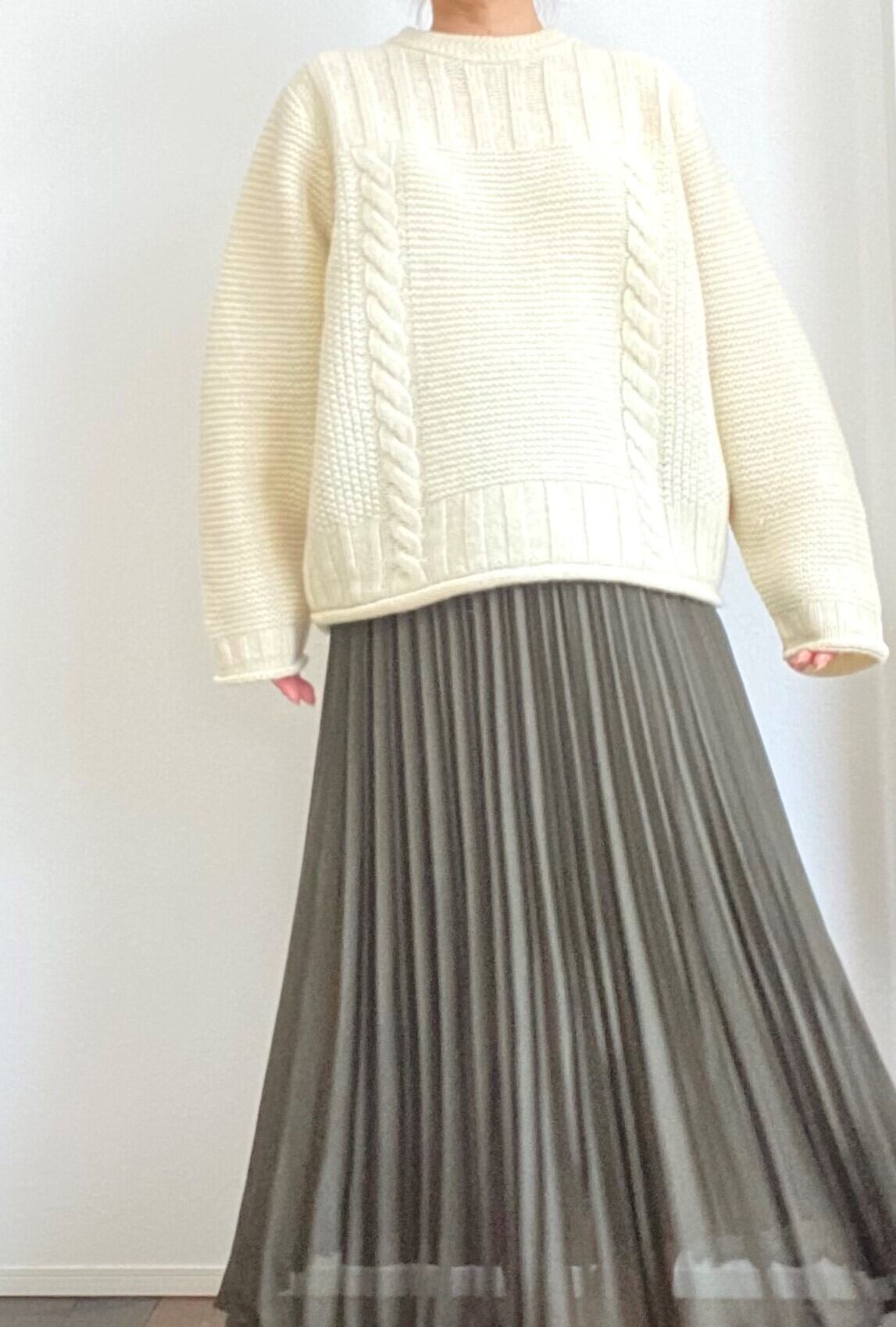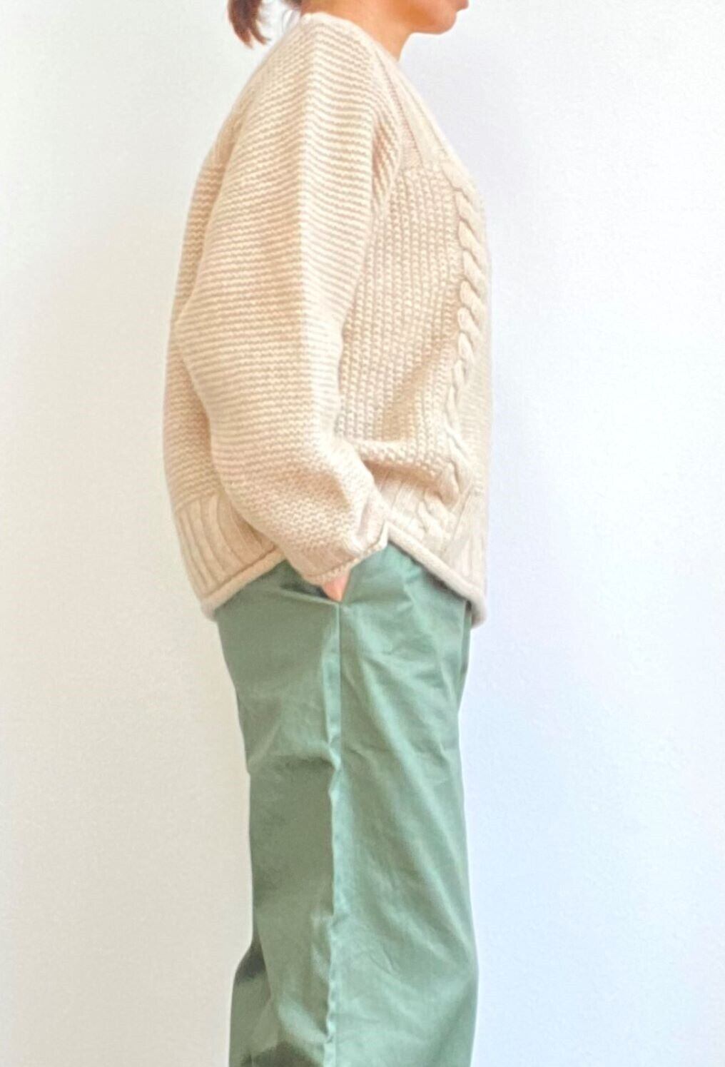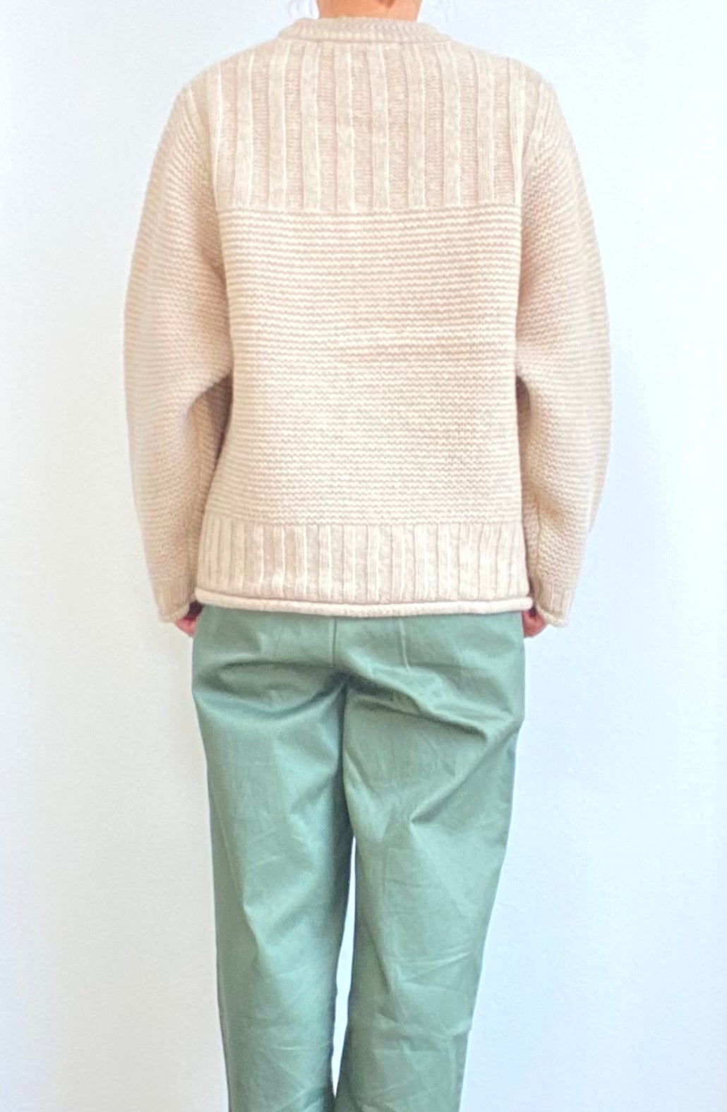 ざっくりと編み上げられしっかりした生地ですが、重さはそれほどなく心地よくご着用いただけます。